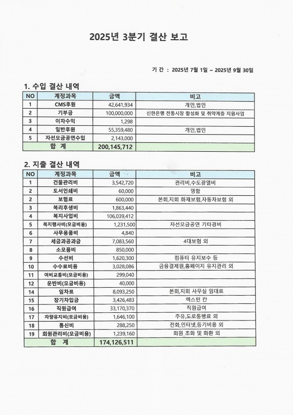 2025년 3분기 결산보고